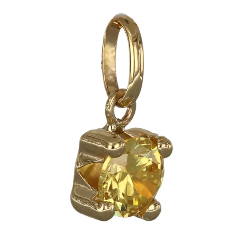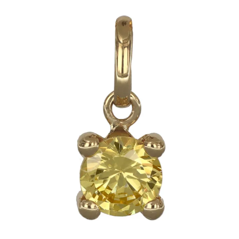 Månadssten smycke för månad november äkta guld 9 karat. Storlek på stenen 5 mm i diameter, höjd på smycket inklusive ögla 11 mm. Färgad syntetisk sten liknande citrin.