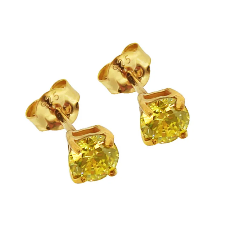 Månadsstenar örhängen, månadssten för augusti, gulgröna stenar infattade i guldförgyllt äkta silver 925. Diameter 5 mm.