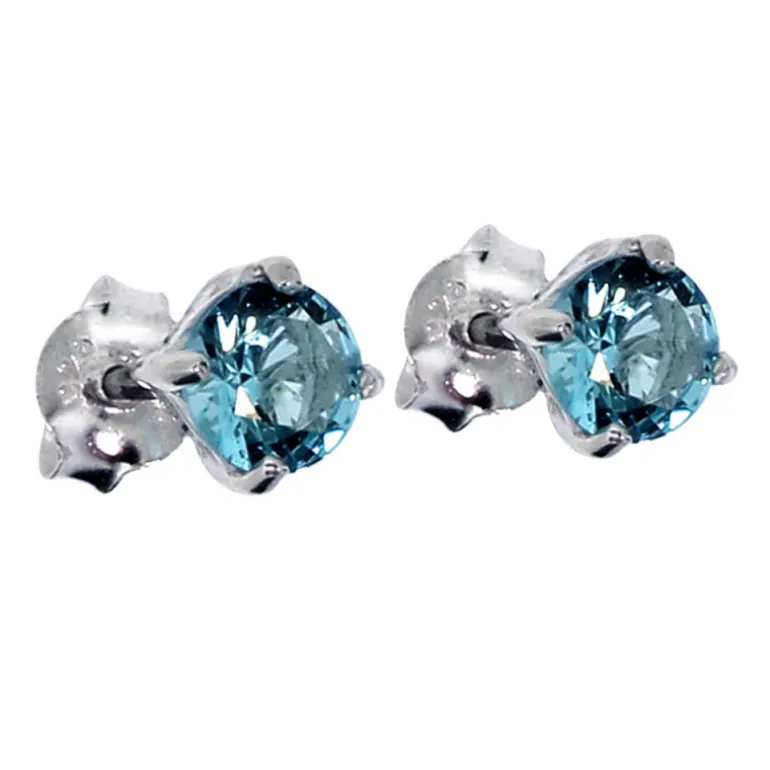 Silverörhängen med ljusblå stenar, mars månadssten, infattad i äkta silver. Diameter 5 mm.