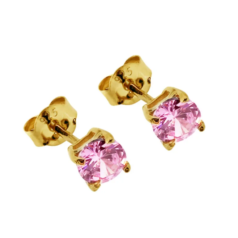 Månadsstenar örhängen, månadssten oktober, rosa stenar infattade i guldförgyllt äkta silver 925. Diameter 5 mm.