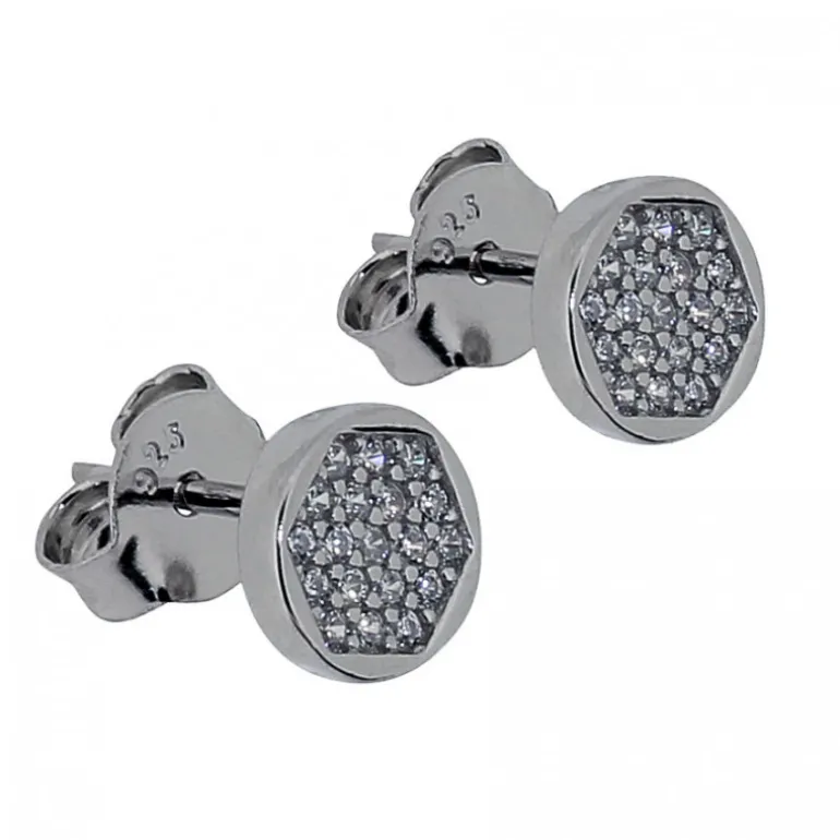 Runda silverörhängen med många små stenar i infattade i äkta silver 925.