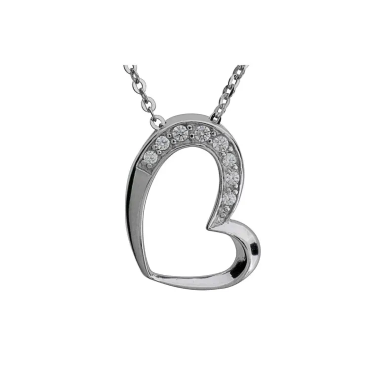 Hjärta på snedden med stenar i äkta silver, kedja ingår.