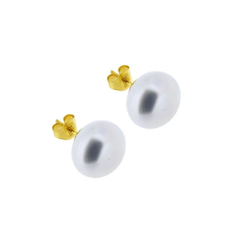 Örhängen med stora vita pärlor och guldstift.