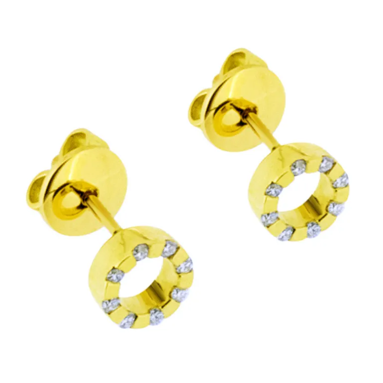 Fasta örhängen i guld med diamanter på ringar, rödguld 18 karat.