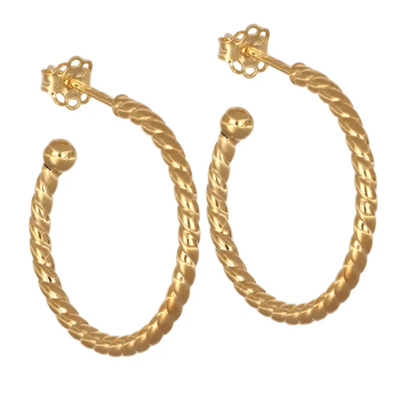 Guldörhängen rope, hoops ringar med mönster som ett rep. Creoler ytterdiameter 23 mm, bredd 2 mm. Material 9 karat guld, det vill säga 37,5 % guld och resten silver och koppar.