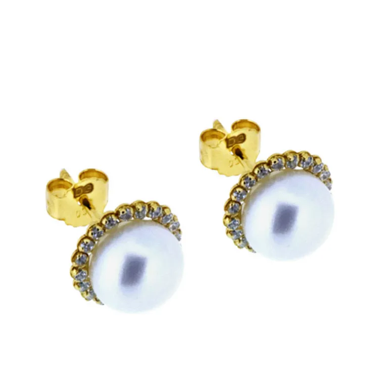 Guldörhängen 18 karat guld med pärlor och vita gnistrande cubik zirkoner.