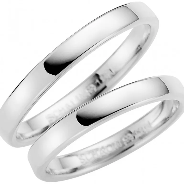 Slät lätt kupad ring i platina som förlovningsring och vigselring, bredd 3,0 mm. Gravyr ingår.