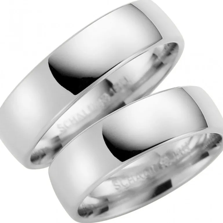 Slät lite bredare platinaring som förlovningsring och vigselring, bredd 6,0 mm. Gravyr ingår.