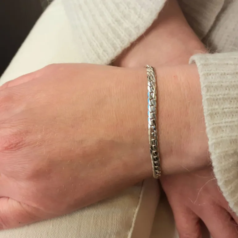 Silverarmband pressad pansar, armband i äkta silver i manglad platt modell.