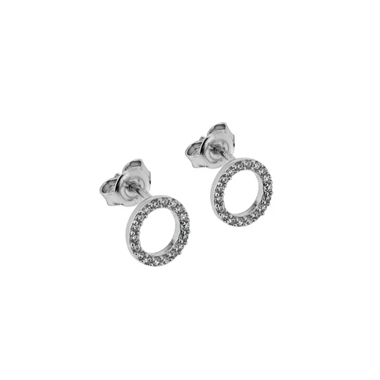 Silverörhängen med ringar och glittrande stenar, vita cubik zirkoner.