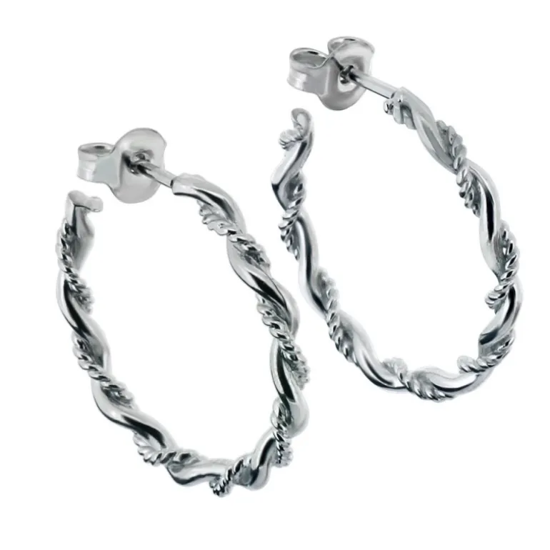 Rope, creoler ringar som örhängen, hoops örringar med vridet mönster, material äkta silver 925.