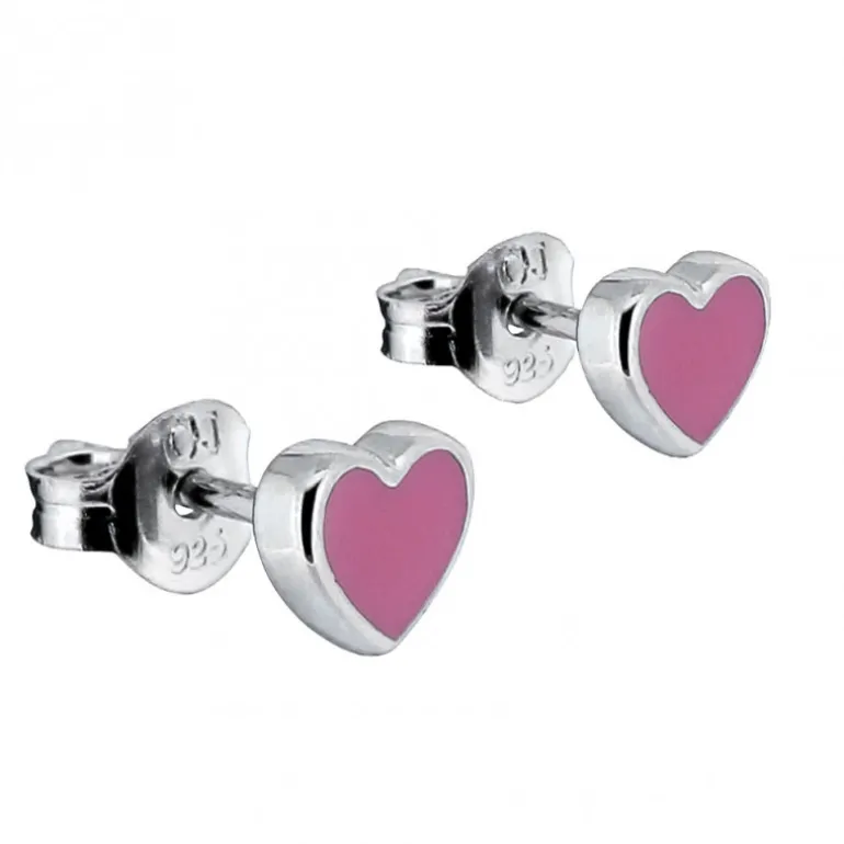 Silverörhängen med rosa hjärtan i äkta silver 925.