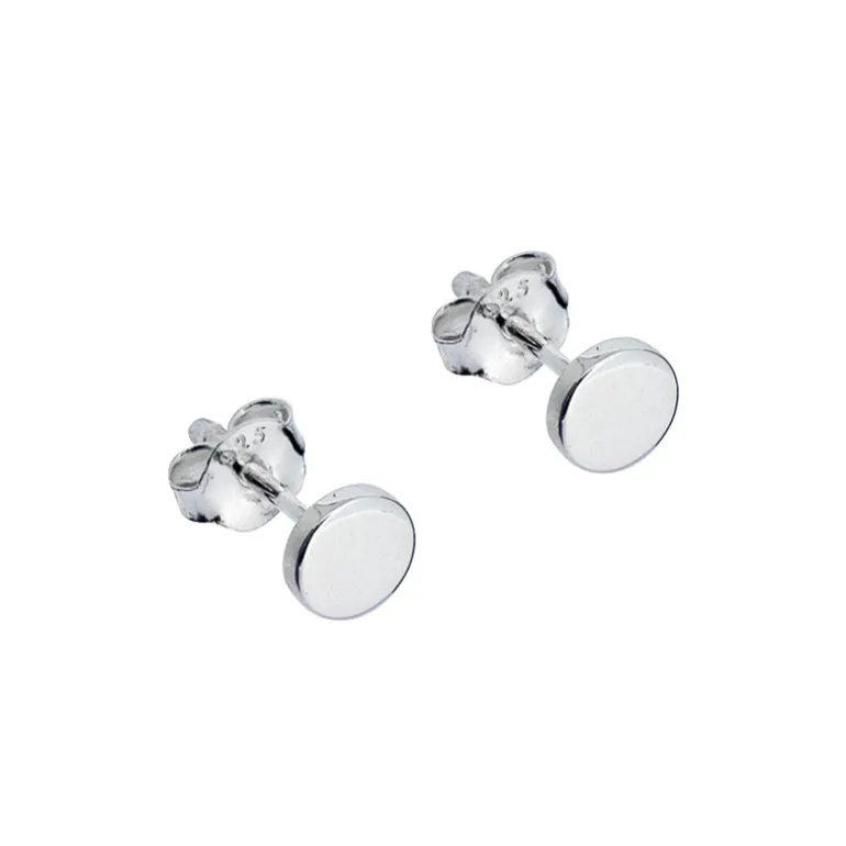 Stilrena fasta örhängen med runda plattor i äkta silver 925.