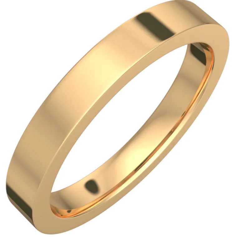 Ringen har en rak profil och vi kan tillverka den i olika bredder i vanligt rödguld, vitguld eller silver.