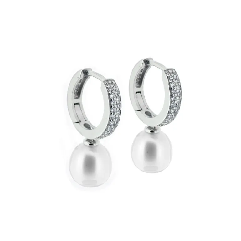 äkta silver 925, vita glittriga cubik zirkoner och droppformade sötvattenspärlor.