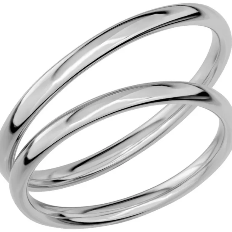 Smal och tunn slät kupad förlovningsring och vigselring i vitt guld, Sign of love SR 1001 från Schalins ringar.