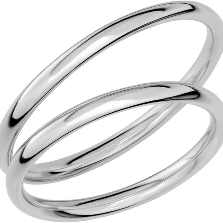 Smal kupad guldring i vitt guld som förlovningsring och vigselring i vitguld 18 karat, Sign of love SR1008 tillverkad av Schalins ringar.
