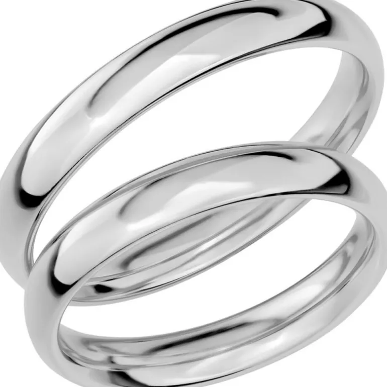Slät klassisk kupad rundad vitguldsring som förlovningsring och vigselring tillverkad av Schalins ringar. Modellen heter Sign of love SR1011.