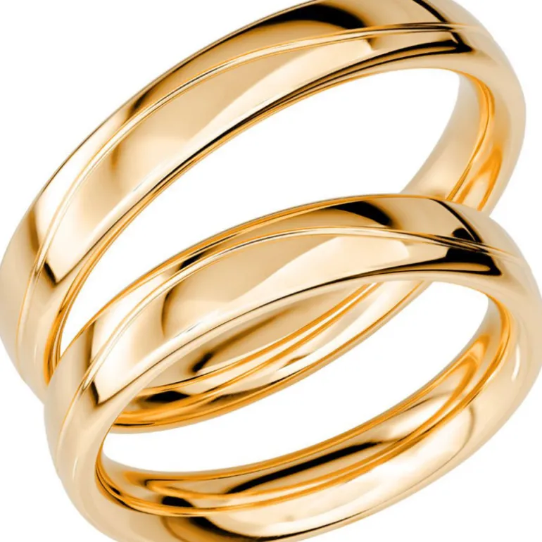 Guldring med graverat spår som går som en våg runt hela ringen, material vanligt guld 18 karat, till förlovning och vigsel Sign of love SR1019 tillverkad av Schalins ringar.