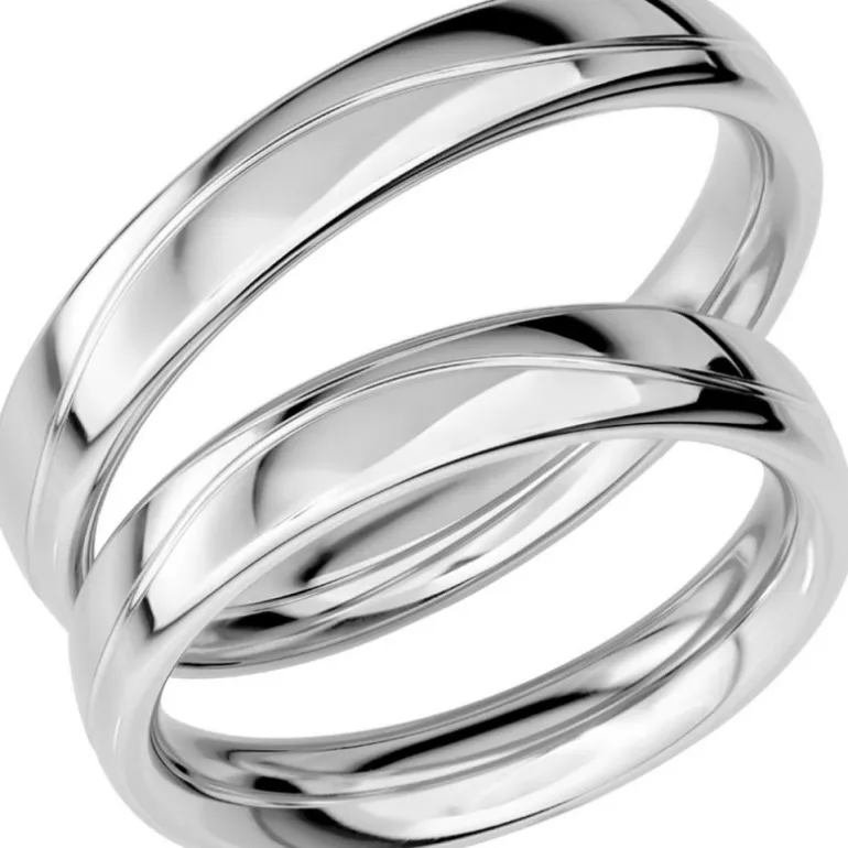 Vitguldsring med graverat spår som en våg med mönster runt hela ringen, vitt guld 18 karat, till förlovning och vigsel Sign of love SR1019 tillverkad av Schalins ringar.