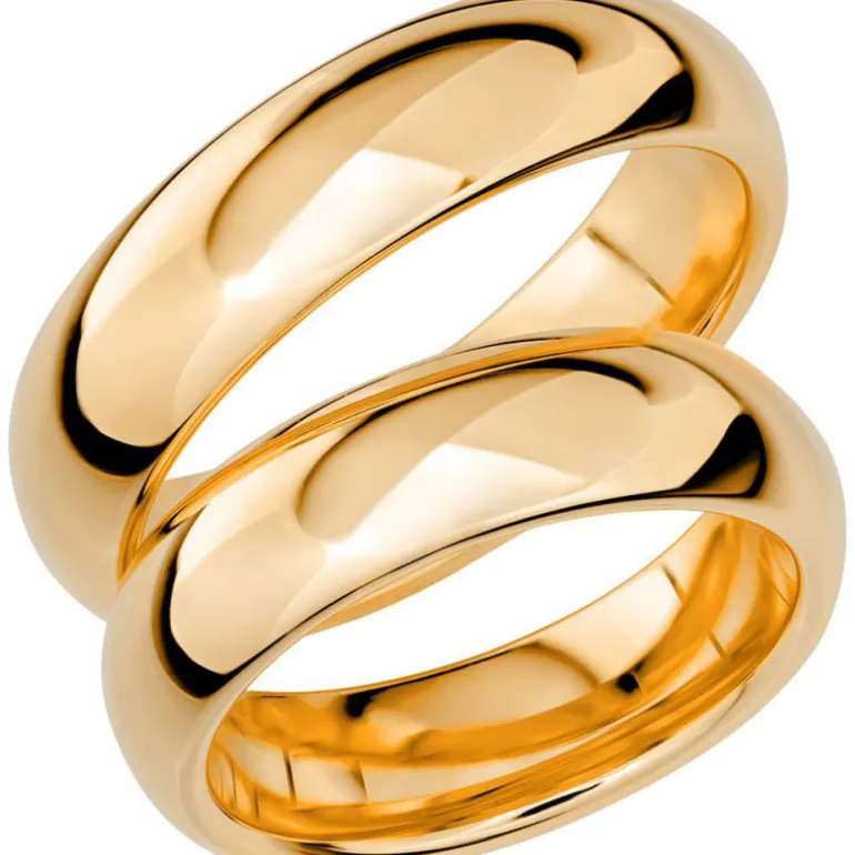Bred och kraftig slät kupad rundad förlovningsring och vigselring, Sign of love SR1028 tillverkad av Schalins ringar.