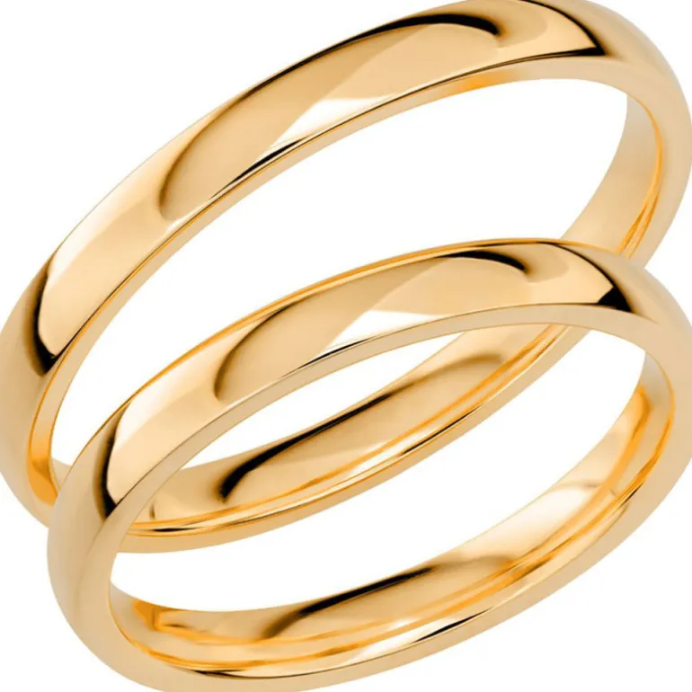 Slät lite smalare förlovningsringar och vigselringar i vanligt guld 18 karat, Sign of love SR1030 tilllverkad av Schalins ringar.