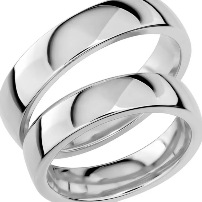 Slät vacker lätt kupad vitguldsring, förlovningsringar och vigselringar tillverkade av Schalins ringar. Denna modell heter Sign of love SR1034.