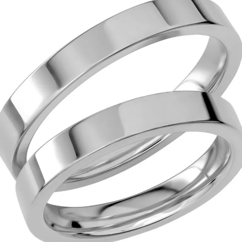 Slät helt rak flack guldring som förlovningsring och vigselring, Sign of love SR1039 tillverkad i vitt guld, vitguld, från Schalins ringar.