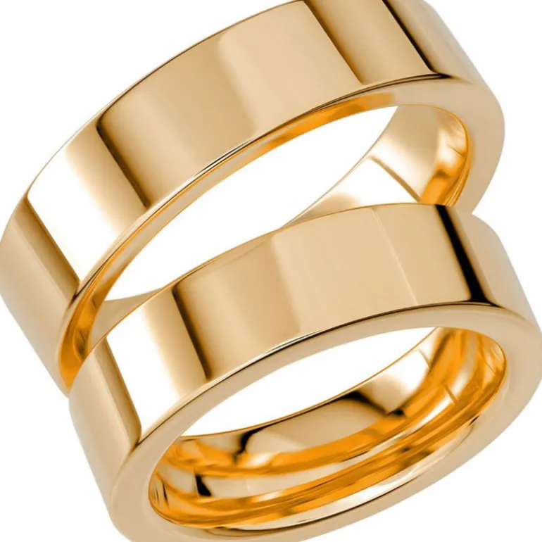 Bred rak slät och hög guldring i vanligt guld 18 karat, förlovningsringar och vigselringar tillverkade av Schalins ringar, Sign of love SR1042.
