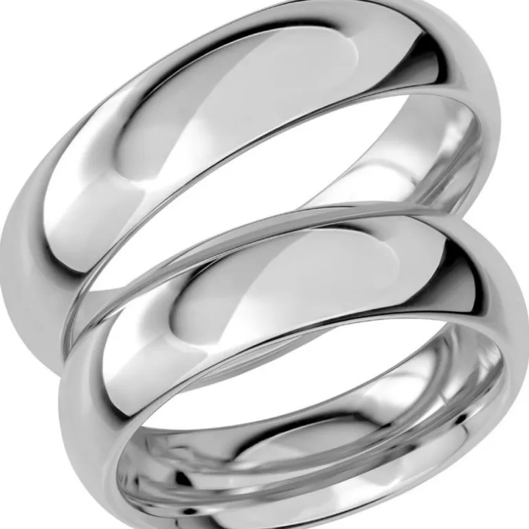 Bred och kraftig hög kupad rundad guldring som förlovningsring och vigselring i vitt guld 18 karat, vitguld. Sign of love SR1049 tillverkad av Schalins ringar.