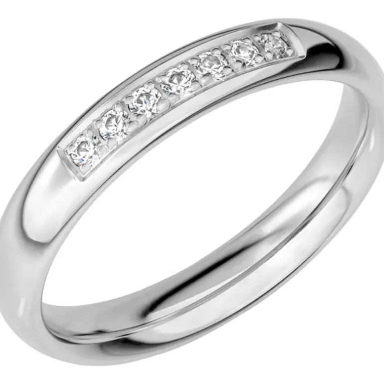 Sign of Love, kupad rundad vitguldsring med sju diamanter snyggt fattat i så kallad faden. Ring i 18 karat vitguld och briljanter.