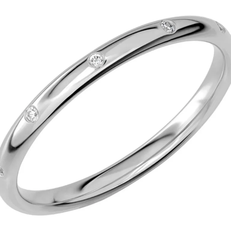 Sign of Love, smal kupad guldring i vitt guld med diamanter i slät enkel fattning som sitter på lite längre mellanrum mellan varandra.