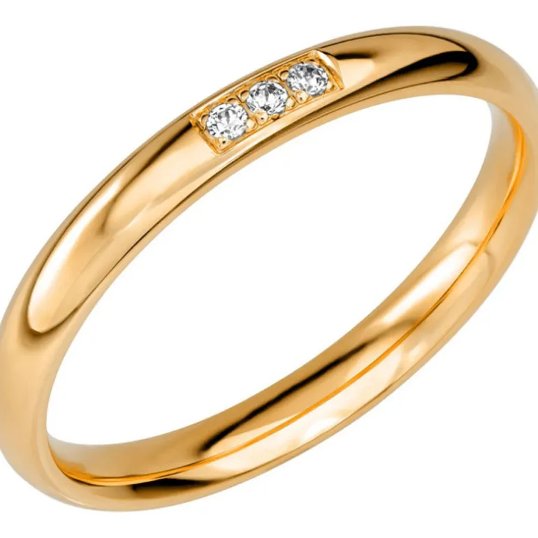 Sign of Love, smal rund kupad ring vanligt guld 18 karat med tre små diamanter snyggt fattade fyrkantigt skuret bredvid varandra.