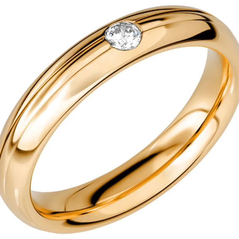 Sign of Love, rund kupad ring i vanligt guld 18 karat med spår i mitten och diamant.