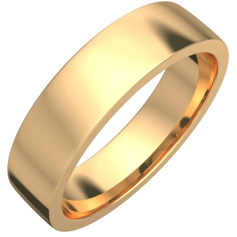 Förlovningsring och vigselring guld 14 karat, bredd 5,0 mm och höjd 1,6 mm.