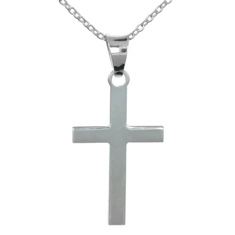 Kors, halsband med silverkors och kedja i äkta silver 925. Slätt blankt gediget massivt kors. Höjd på korset inklusive ögla 30 mm, bredd 14,2 mm och tjocklek 2 mm. Välj önskad längd vid beställningen.