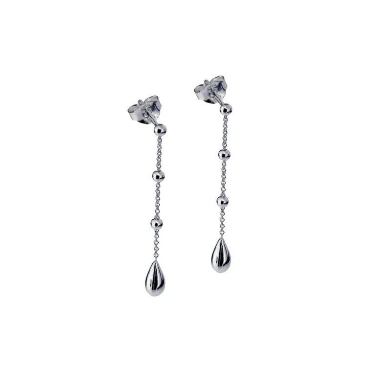 Örhängen med droppar på silverkedjor med små kulor.