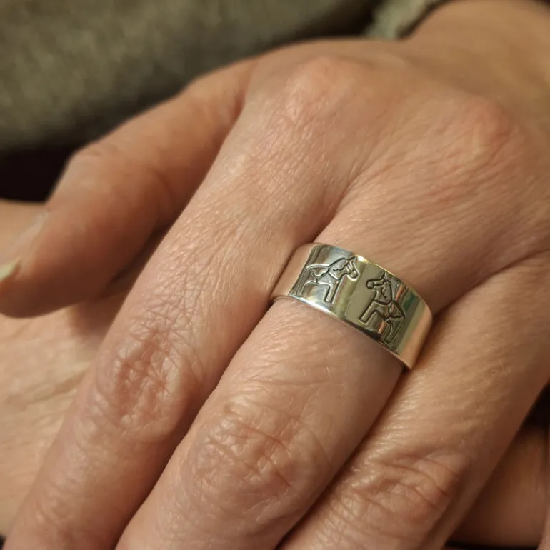 Ring i äkta silver 925 med stansade dalahästar.