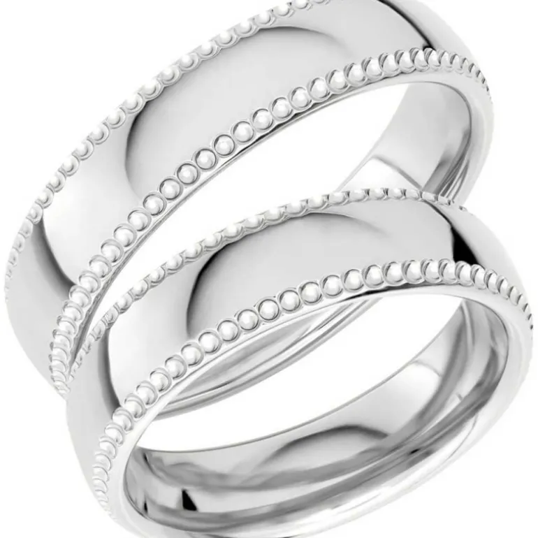 Reflection 01, förlovningsring och vigselring i äkta silver med kulmönster, mönstrad guldring tillverkad av Schalins ringar. Ny modell med mönster som kulor som finns i flera olika bredder.
