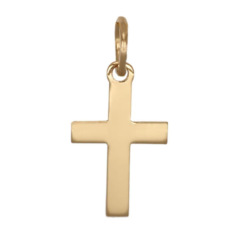 Slätt blankt guldkors, smycke kors i äkta guld 18 karat. Höjd inklusive ögla 17 mm, bredd 8,6 mm.