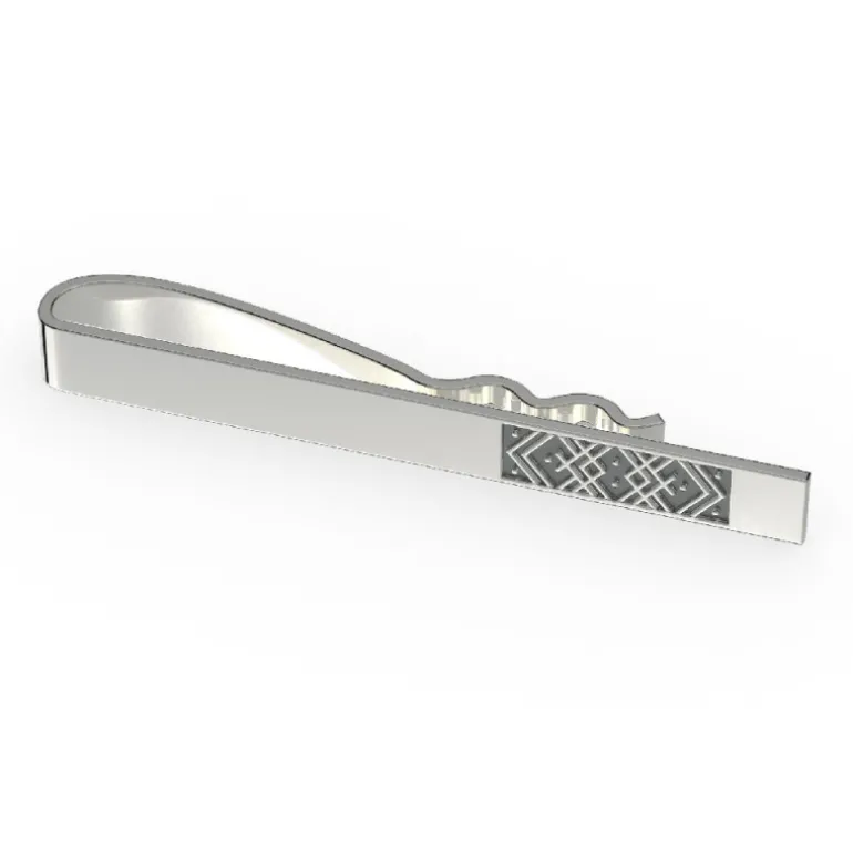Slipsnål i äkta silver med vackert oxiderat mönster från krusband.