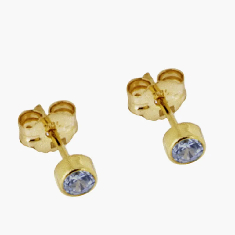 Små guldörhängen med gnistrande vita cubik zirkonia diameter 3,3 mm 18 karat guld.