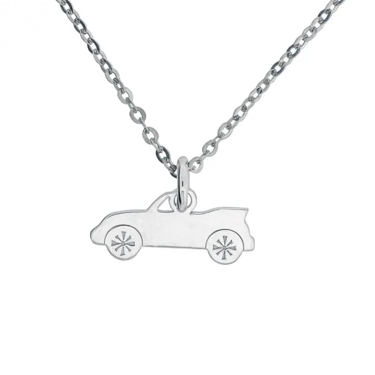 Halsband med bil som smycke i äkta silver 925, kedja ingår.