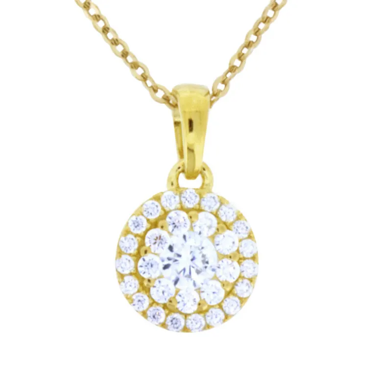 Halsband med mycket glitter i guldförgyllt äkta silver 925, kedja ingår.