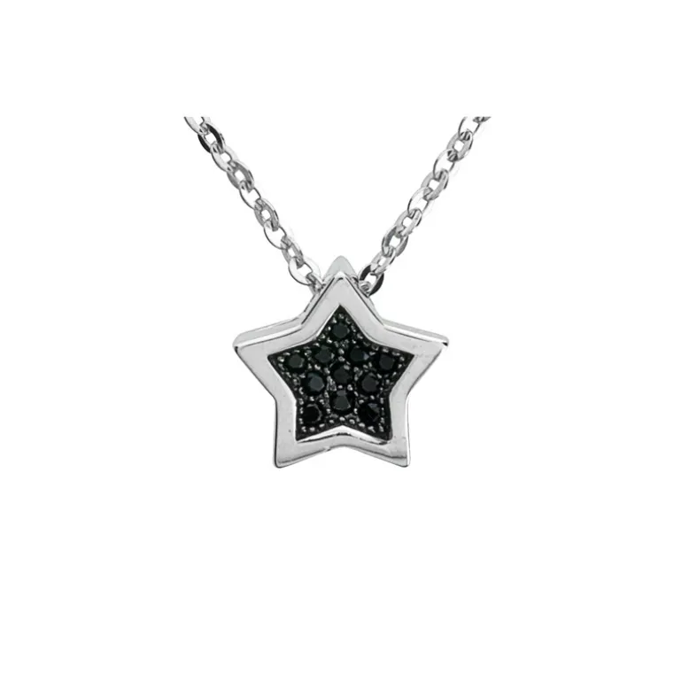 Halsband med stjärna och svarta glittrande stenar i äkta silver.