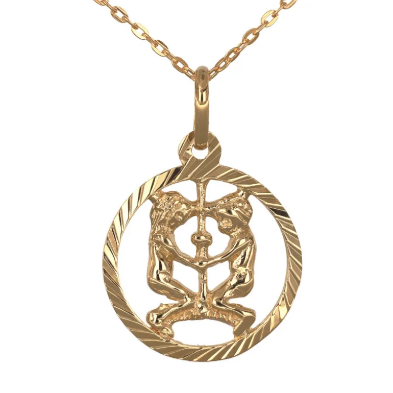 Stjärntecken tvillingarna, smycke tvilling berlock i äkta guld 9 karat. Smycket är tillverkat i 9 karat guld, det vill säga en blandning av 37,5 % guld och resten silver och koppar. Ytterdiameter 14 mm, höjd inklusive ögla 21 mm. Kedja modell ankar, bredd 0,6 mm artikel 9-50-0001. Det kan skilja lite inom astrologin, men om du är född mellan 22 maj och 21 juni är du född i tvillingarnas tecken.