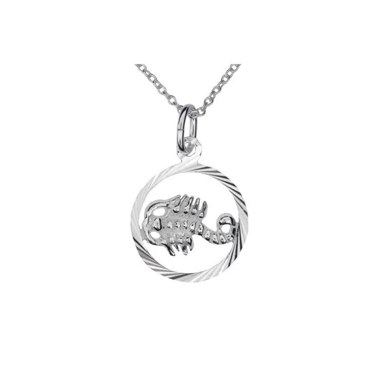 Vårt Stjärntecken skorpion som halsband i äkta silver 925, inom astrologin för dig som är född mellan 24 oktober och 22 november. Halsbandet med stjärntecknet vågen är ett skirt och vackert smycke med glittrande fasetter på sidorna och silverkedja modell ankar.