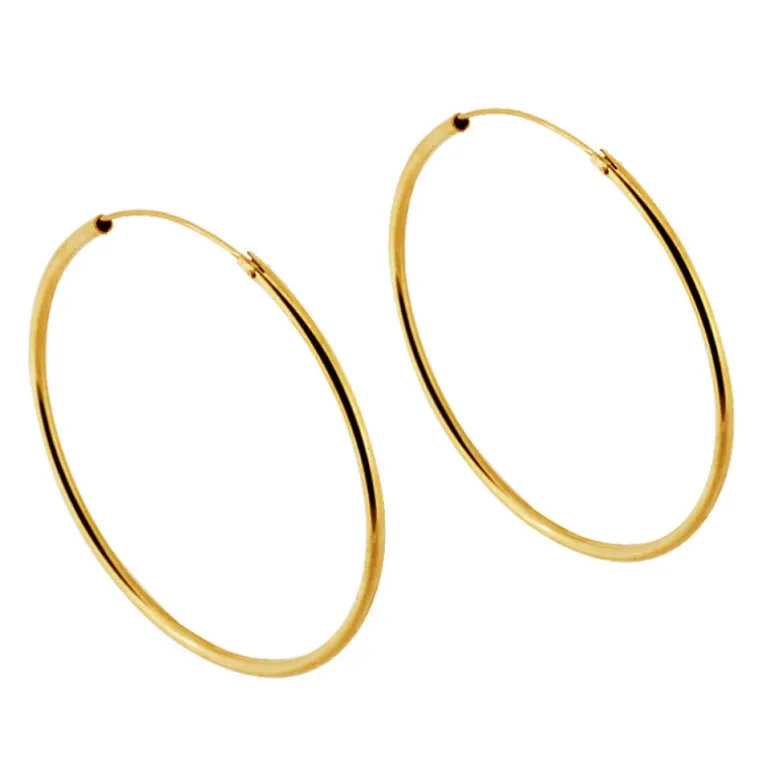 Stora örringar, ringar som örhängen i guldpläterat äkta silver. Diameter 50 mm.