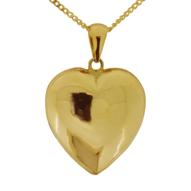 Guldhalsband med stort guldhjärta och guldkedja i äkta guld 18 karat.