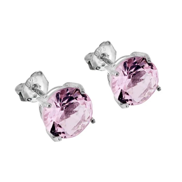 Studs, silverörhängen med ljust rosa stenar infattade i äkta silver 925. Diameter på stenarna 8 mm.